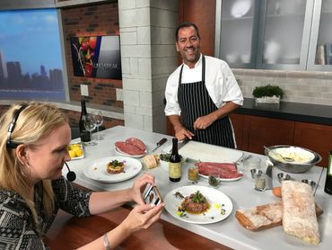 Stefano prepares his Tartare di Manzo, live on WGN News' Midday Lunchbreak