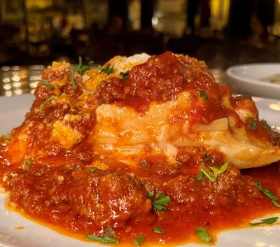 Ingredients: Lasagna noodles, mozzarella, parmigiano, ground beef, San Marzano peeled tomatoes, garlic, onions, carrots, celery, olive oil, salt, pepper